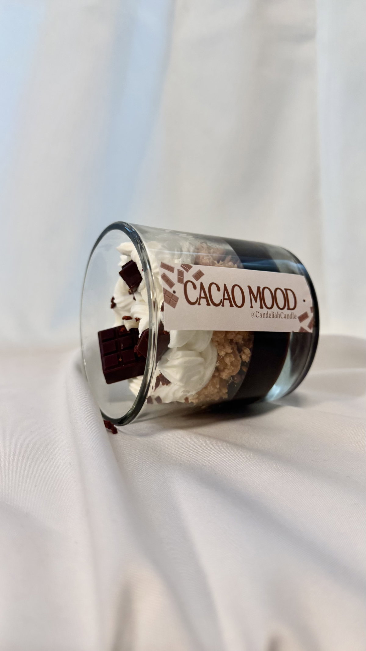 Irresistible, dulce y absolutamente tentadora, la vela Cacao Mood es un postre convertido en experiencia sensorial. Esta vela de cera de soja combina una base intensa de chocolate profundo con una capa superior que imita galleta dorada recién horneada, coronada con delicados detalles de “crema” y pequeños trozos de chocolate.